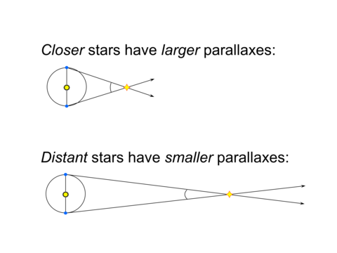 This gives us a means to measure distances directly by measuring the parallaxes of nearby stars.