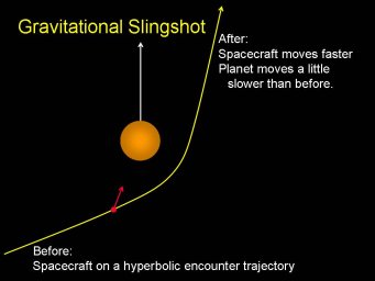 - A spacecraft catches up with Jupiter from behind, and is accelerated