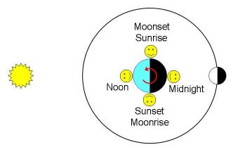Other examples were given in class (Better, work out the approximate moonrise and moonset times for the current phase of the Moon, and then go outside and see if your predictions are correct!)