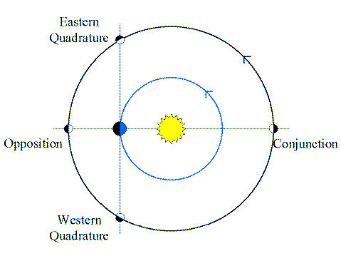 - Planet at right angles to the Earth-Sun line.