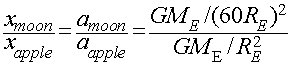 - Distance an Apple falls on Earth in 1 second: xapple = 4.9 meters