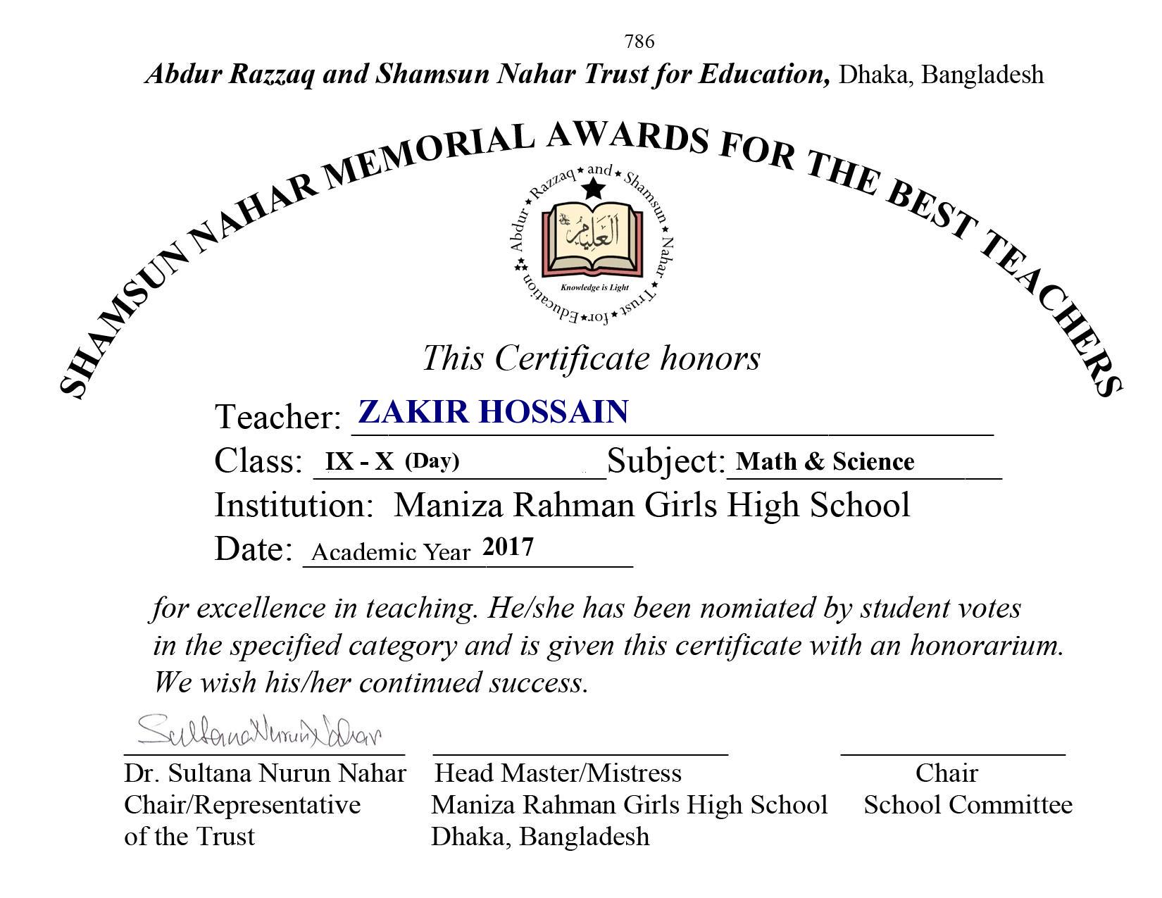 iii) Md. Zakir Hossain (Classes VI-VIII, Day Session)
