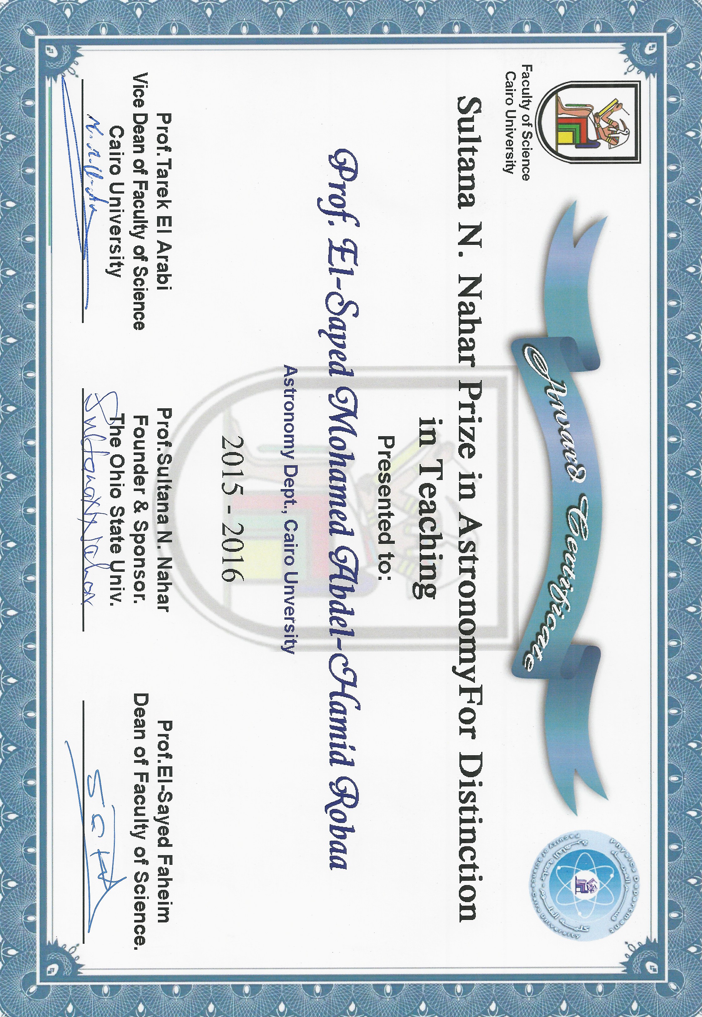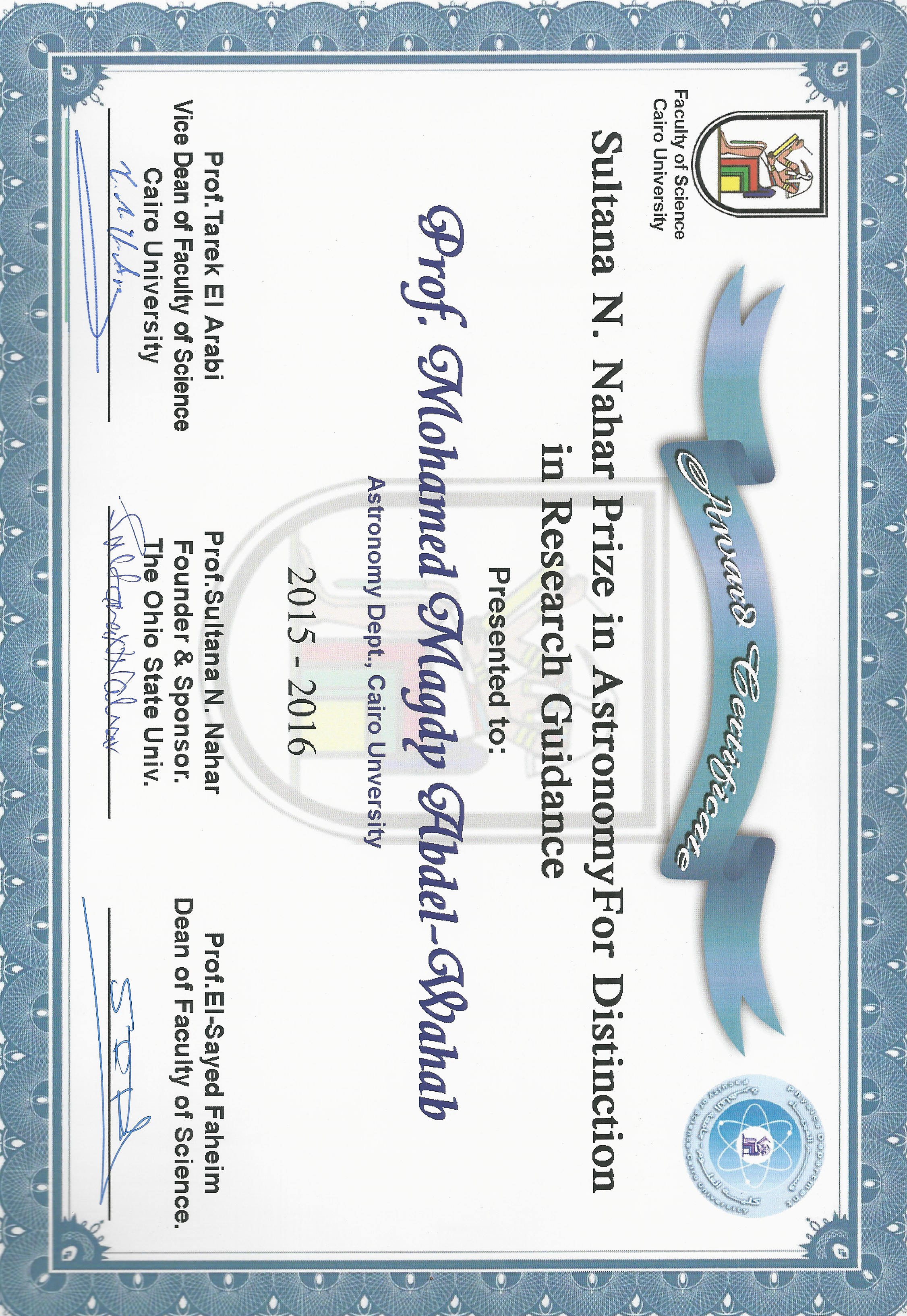2. Chair, Department of Astronomy, Cairo University