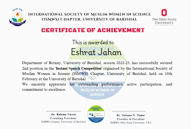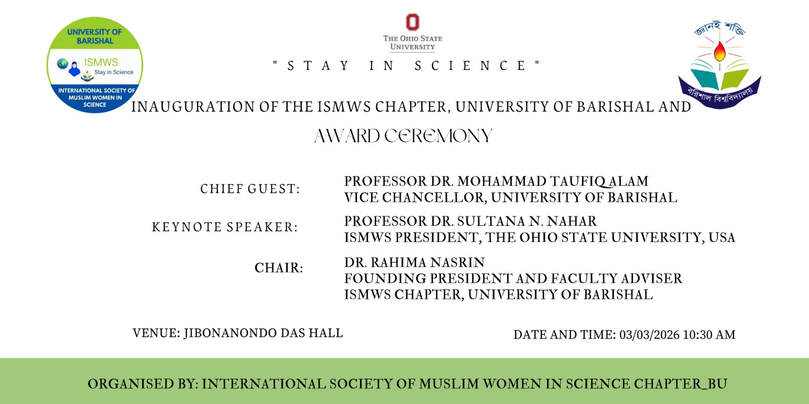 institution of the chapter, ISMWS-Barishal Univeristy, in March 2026 with