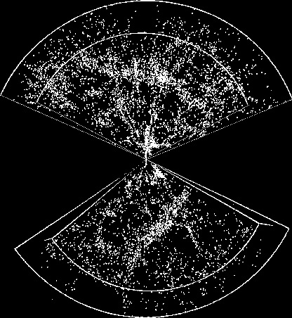 The two wedges shown above contain 9500 galaxies out to a redshift