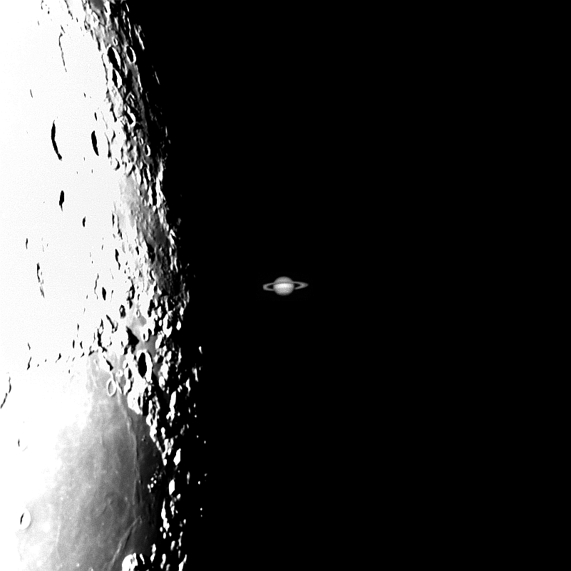 This is a composite 900x900 image made ot two images taken few minutes apart, the Moon is about to cover Saturn: